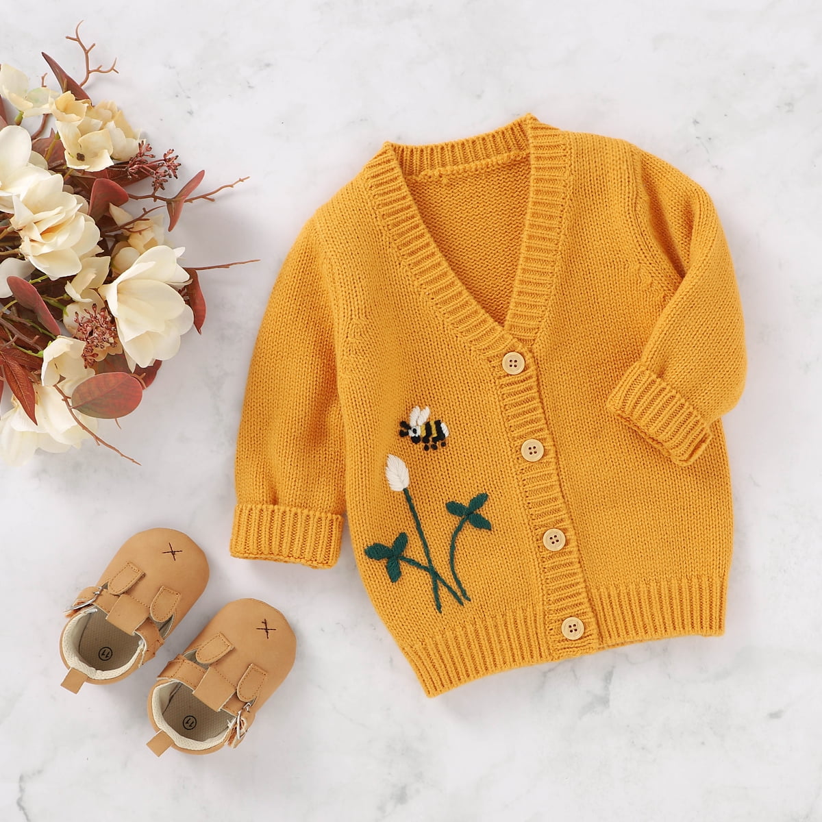 Seyurigaoka Baby Unisex Sweaters Long Sleeve V Neck Floral Embroidered Cardigan Walmart Com